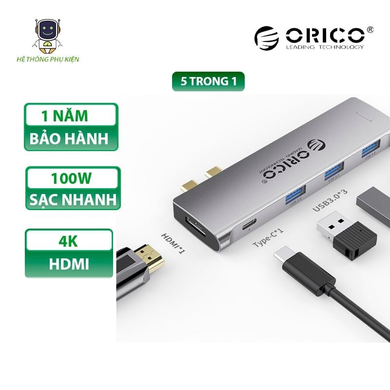 Đế cắm (Docking)- Hub đa năng 5 trong 1 cổng Type C cho MacBook- ORICO 2CT-5H-GY