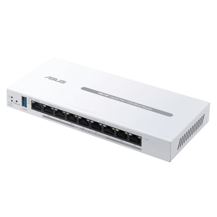 ASUS ExpertWiFi EBG19P bộ router có dây Gigabit PoE+ VPN, 8 cổng PoE+, 123W, Tối đa 3 cổng Ethernet WAN + 1 cổng USB WAN