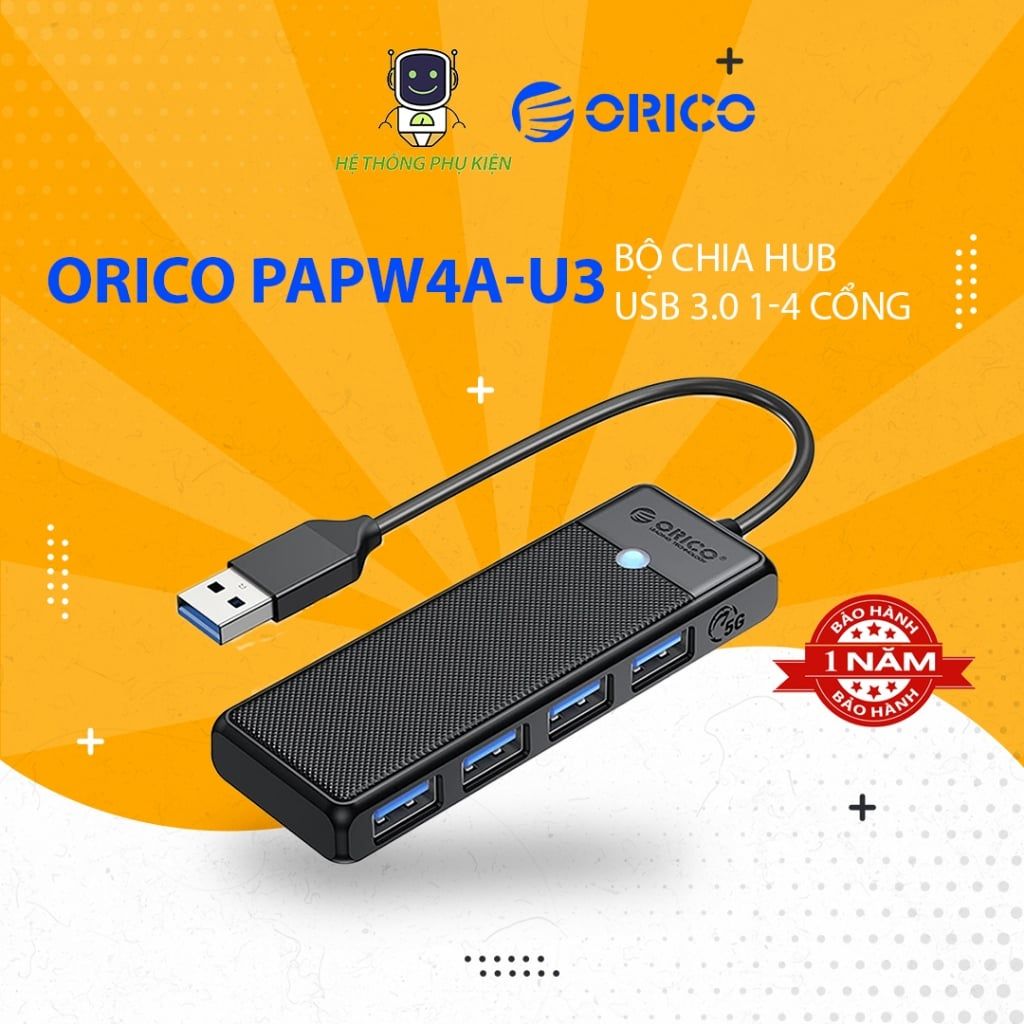 Bộ chia Hub USB 3.0 1 ra 4 cổng USB 3.0 ORICO-PAPW4A-U3 - Hàng Chính Hãng