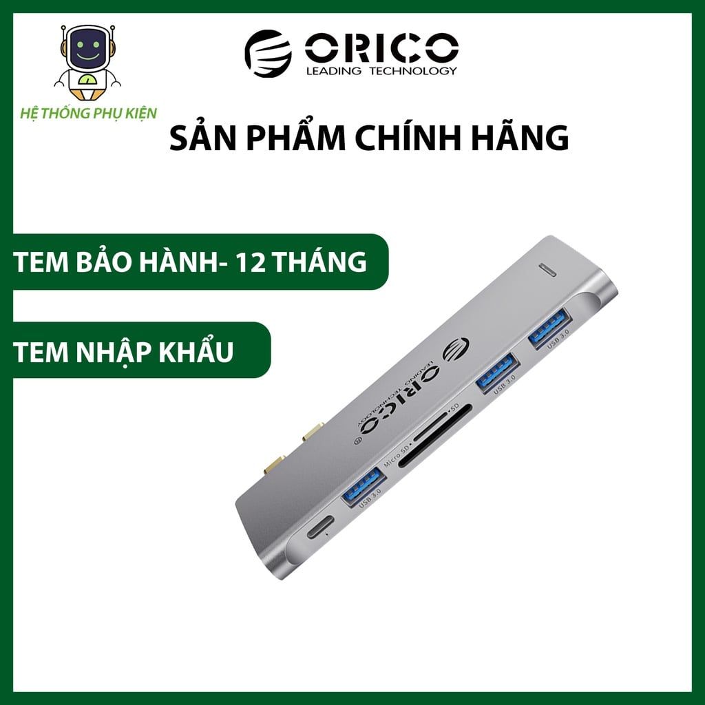 Đế Cắm (Docking) Đa Năng 6 Trong 1 Cổng Type C ORICO 2CT-6TS Hàng Chính Hãng