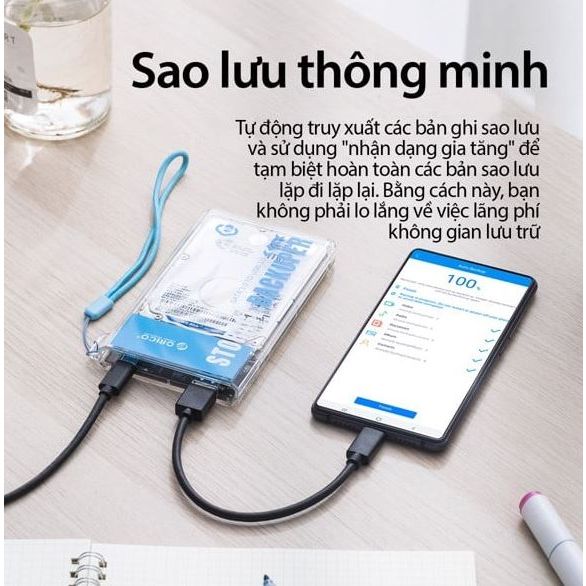 - Thiết kế trong suốt nhìn thấy được ổ cứng bên trong.