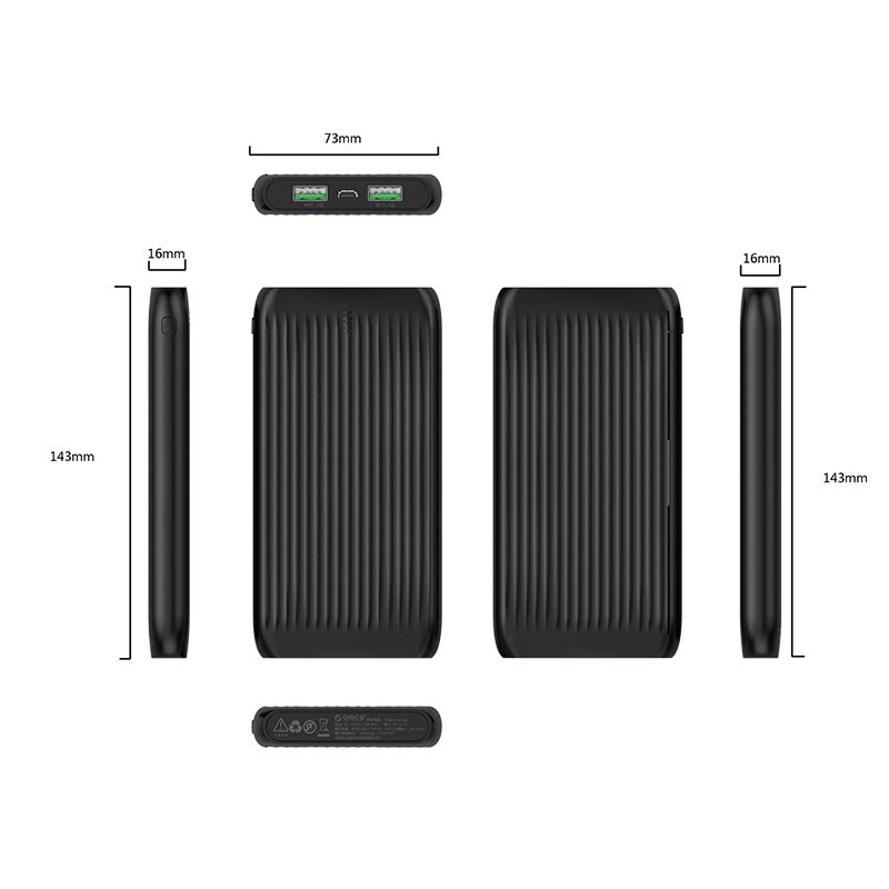 Pin sạc dự phòng Orico K10S Polymer 10,000mAh có kích thước khá nhỏ gọn chỉ tương đương một chiếc iphone nên việc mang theo, sử dụng rất gọn nhẹ. Sản phẩm được làm từ nhựa cứng và màu xám đen cực tinh tế và sang trọng.