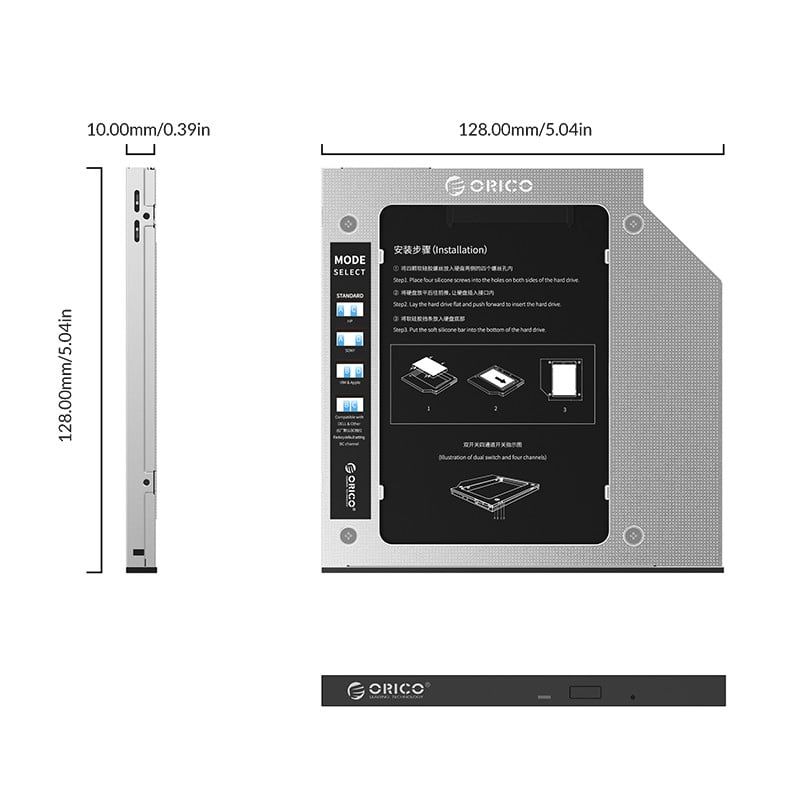 - Dùng cho cả SSD và HDD. Hỗ trợ khe cắm dày 9.0/9.2 và 9.5mm.