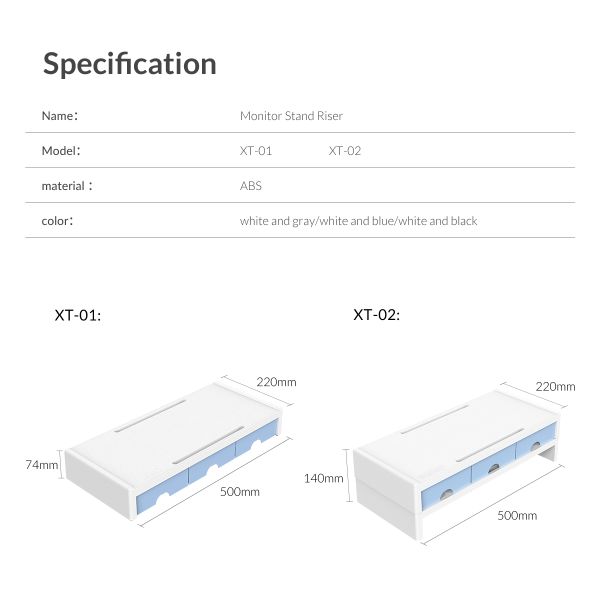 - Kích thước: Giá đỡ màn hình ORICO XT-01-BK-BP có kích thước là 50227cm, phù hợp với nhiều kích cỡ màn hình khác nhau, từ laptop đến máy tính để bàn. Giá đỡ màn hình ORICO XT-01-BK-BP có thể nâng cao màn hình lên 7cm, giúp người dùng có góc nhìn tốt hơn, giảm căng thẳng cho mắt và cổ khi làm việc lâu.