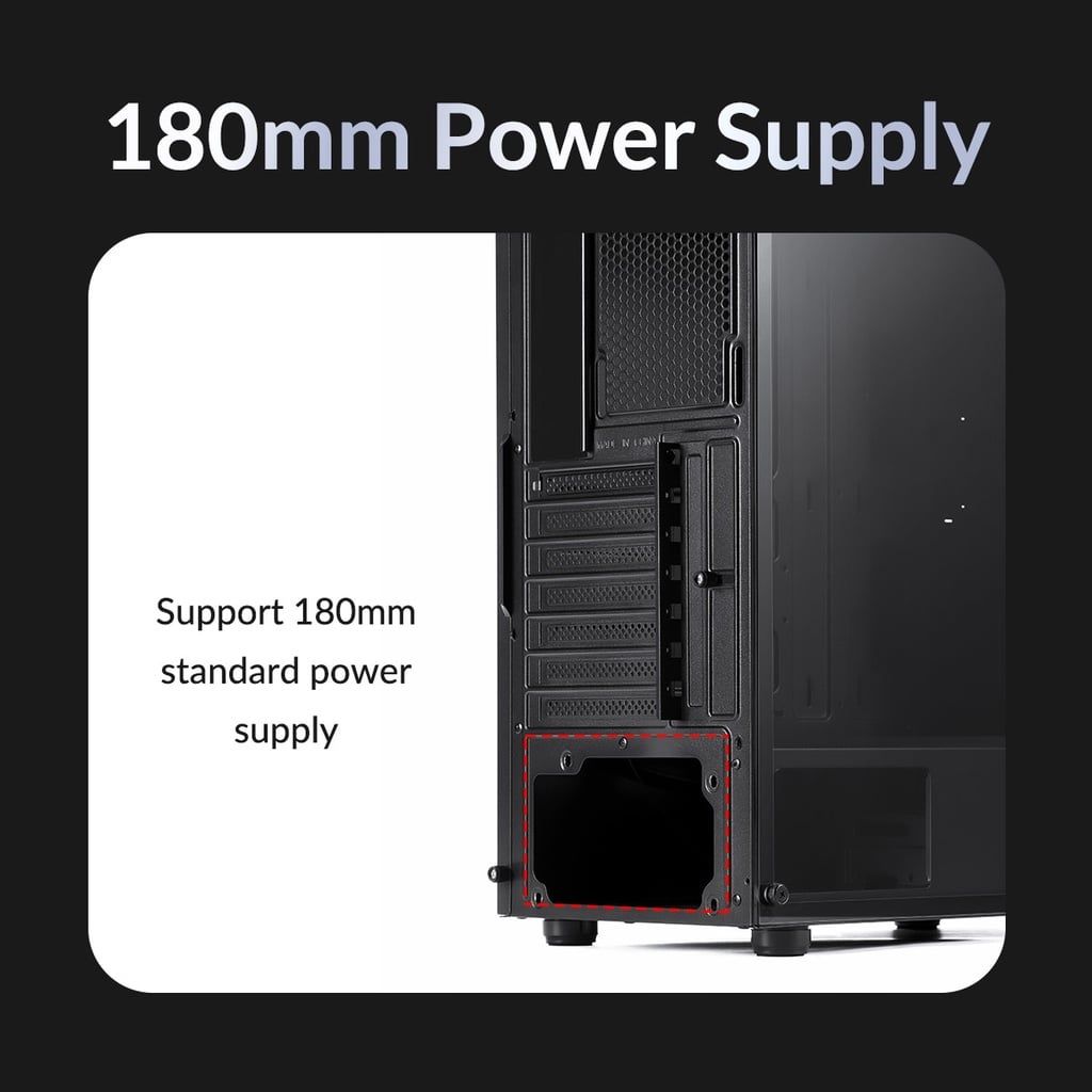 Hỗ trợ bộ đổi nguồn lên đến 180mm.
